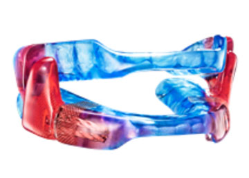 Respire Blue+ is a custom mouthpiece that features a dual block design with interlocking wings. It works by keeping the airway open in any sleep position and allows for a wide range of mouth movement. The new Respire Blue+ has a 4 wings design with 2 adjustable and 2 fixed wings. This appliance is not recommended for those with heavy grinding habits.